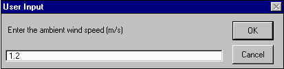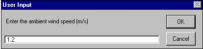 When prompted for the ambient wind speed, enter a value of 1.2 meters per second. Hit OK.