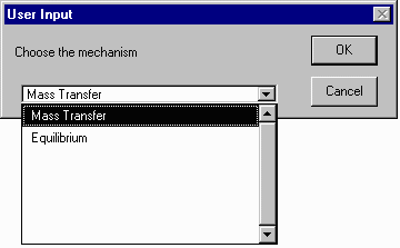 Next you will indicate if you believe the mass transfer in the system is kinetically limited or equilibrium limited. We will assume our system is kinetically limited. Select the first option (Mass Transfer) and hit OK.