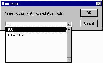 Click on node 1. ArcView will ask you to indicate the type of flow located at node 1. Select ISBL