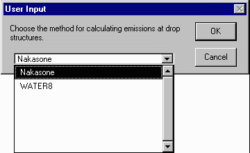 You will then select the method of calculating emissions at drop structures (Nakasone or Water8). Select Nakasone and hit OK.