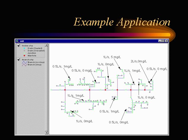 To test the naUTilus/ArcView tool, hypothetical flow data was used to examine the effects of varying conditions. Shown above are the flow rates and concentrations used for the "baseline" condition. When testing one condition, all other conditions were held constant. Other baseline conditions are shown on the next slide.