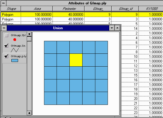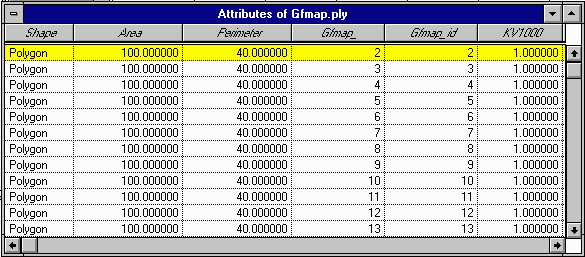 GIS has the ability to store parameters and manage information using spatial references. The database consists of several feature-attribute tables (FTABs) with ID fields that link characteristics to specific map features. The data for a given feature defines its state, to be used in modeling behaviors under OOP. An FTAB usually contains one value for a parameter associated with a given feature. This regime works well for single-valued parameters such as a groundwater cell’s bottom elevation or area. A FTAB from ArcView is shown in Figure 1.