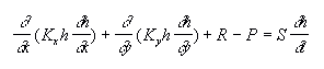 This relationship represents the combined form of the continuity equation, including Darcy’s Law. Many self-contained models solve the combined equation but it is computationally intensive and difficult to incorporate into GIS. The Map-Based Groundwater Model solves the momentum and continuity equations separately which simplifies calculations.