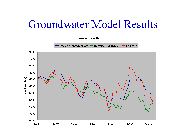 Green-Water levels predicted using stream flows predicted by thesoil-water balance model