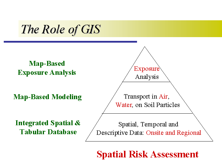 This is the spatial risk assessment hierarchy. Each step builds on the other and the GIS application is integral to each component of the pyramid.