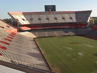 This is Ben Hill Griffin Stadium, otherwise known as the Swamp. On Saturdays in the fall, it houses tens of thousands of screaming, crazy Gator fans cheering their team to victory. The empty stands become a sea of orange and blue, all focused on the action of the field. It's a great feeling to walk through the tunnel into the stands, see the green of the football field, and look across and see people just like you! That's what Gator football's all about! Click here for the 2001 Gator football schedule to see our most recent victories.