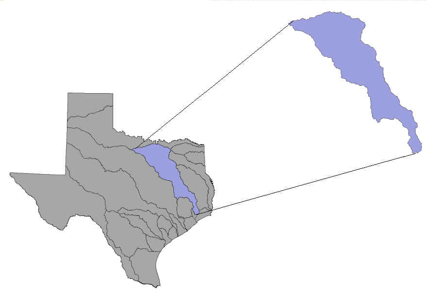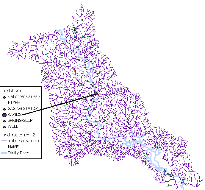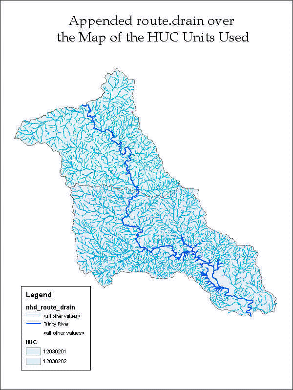 When the National Hydrograph Dataset (NHD) was released last year a more integrated way to look at the hydrologic features of the United States emerged. This study looks into two specific features of the NHD, the Append Aml and linear addressing. Append Aml, provided by the makers of the NHD, allows for the combination of multiple workspaces of the NHDinARC, as NHD information presented in the ARC/INFO format is called. Linear referencing answers the question: Where are we on the River? The linear referencing system devised by the creators of the NHD and the utilization of Route Events, a capability of ArcInfo 8.1, will be explored. The original subject area for the study was the Trinity River Basin as shown below, but it was decided that a subject area this large was unnecessary.