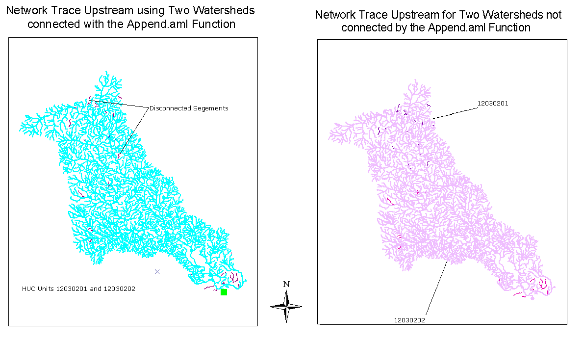 Using the Append Aml allows one to combine multiple NHDinARC workspaces. When a network trace was done it was seen that there is no real difference between networks created using Appended and Unappended CUs. It is easier to work with multiple CUs when they are appended because one does not have to remember to load all of the data associated with each CU. Also, one is assured that all the pertinent data is not duplicated.