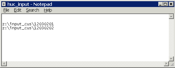 To append the HUC units 12030201 and 12030202, the Append Aml was downloaded from the NHD website. Since Append is a macro, it runs in ARC of the ARC/INFO Workstation. The first step is to create a text document that contains the locations of the CUs that will be appended.