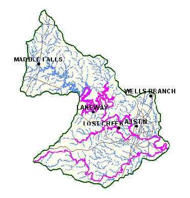 The Austin-Travis Lakes Cataloging Unit is located in central Texas and extends from Burnet in the northwest corner to Austin in the southeast and covers 1251.06 sq mi. The northwest corner of the watershed is rural, while the southeast portion contains the urban area of Austin. A map provided by the EPA on the Surf Watershed website is located below.