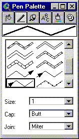We no longer need the theme digitize.shp, so you may delete it from the view window. At this point, it is important to know the direction of the stream line theme. Although common sense says that it should point upstream to downstream, HEC-RAS defines streams in the opposite direction. To be consistent with the HEC-RAS data, the digital stream should point from downstream to upstream. To check the direction of the line, double click on the theme in the legend bar in order to bring up the legend editor. Click on the pen palette and choose an arrow representation.