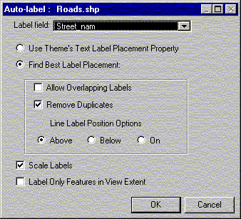 As the label field, select "Street_nam" and click OK. The roads theme will now be labeled with the individual