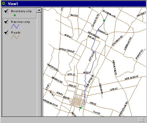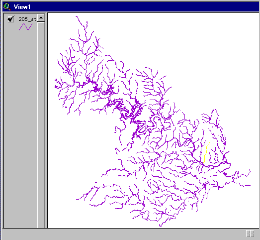 coverage has been added to the view window, the stream (polyline) of interest is chosen