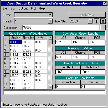 stations, and reach lengths between cross-sections. HEC-RAS allows each cross-section to