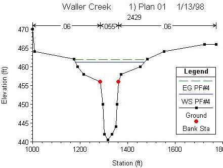 water surface elevation. In this manner, water surface elevations are calculated for