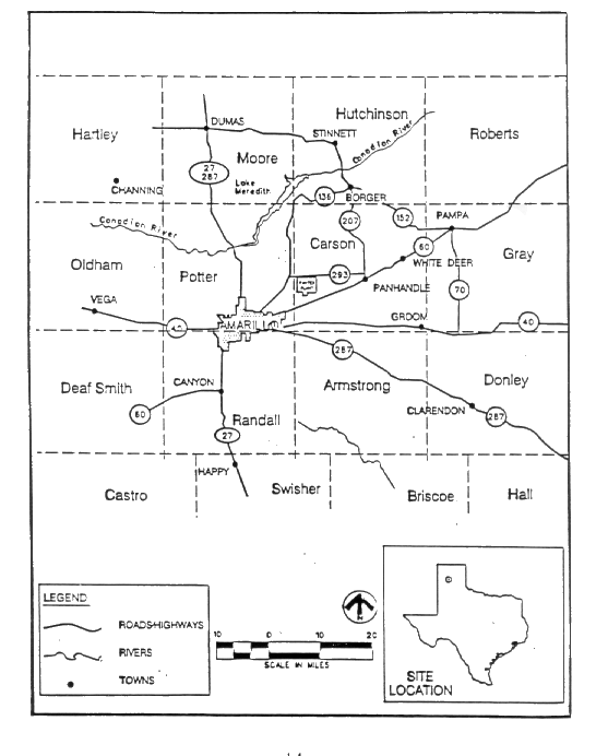 Figure 2. Diagram of Amarillo, Pantex, and the Surrounding Counties