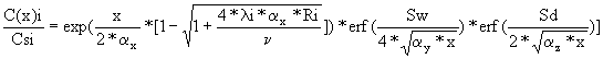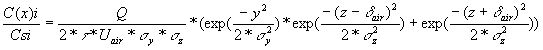 Values used for a residence 3.5 km from source. To obtain maximum, an F class stability is used.with a wind speed of 1 m/s along a line from source to residence. y = 0.