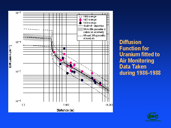 We were not able to find good meteorological data for the site that went back to the beginning of operation. We derived our own dispersion coefficients using measurements of radon and uranium downwind in different directions.