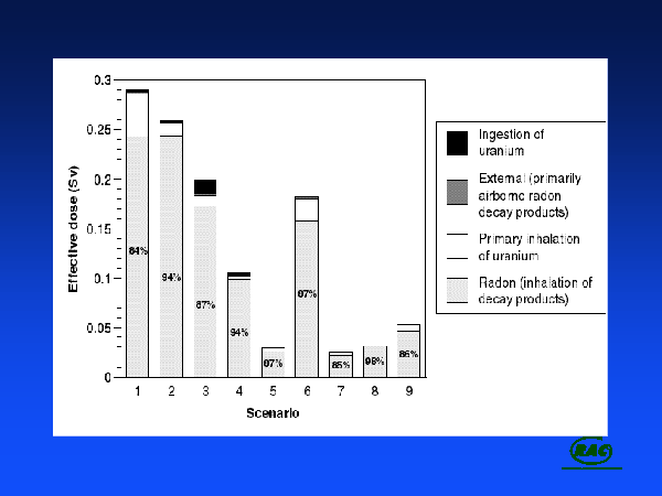 When the different pathways are considered, it is radon dose to the lung that is most significant.