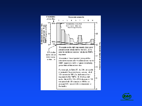 The background risk of fatal cancer to residents is about 20%. This figure shows the additional risk estimated from the Fernald facility to the different scenarios.