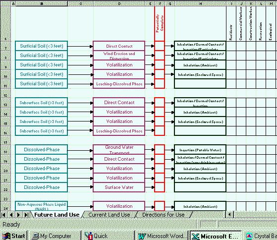 The third sheet provides some basic instructions. The instructions that pertain to screening level comparisons to concentrations of chemicals of concern do not apply to this exercise (They would be part of later evaluations once physical sampling had been completed).